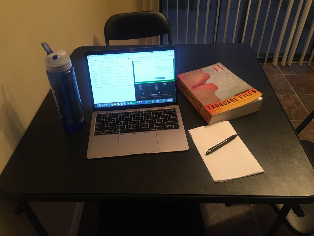Since deadlines this quarter were on Tuesdays and Thursdays, having late class at 7-9:30pm the day before, I could not write after dinner at 8-11pm as I normally do. My writing routine always includes activities that make me comfortable and relaxed, yet energetic. Therefore, eating and showering are what I do before I sit down and write.